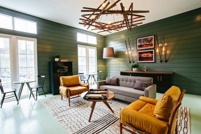Ngoài ra, các vật dụng trang trí chủ đạo là tranh ảnh với những bức tranh được sử dụng thường mang chủ đề trừu tượng hiện đại. Những gam màu rực sáng và đầy phá cách như nâu đỏ, cam ngọt kết hợp với màu vàng, nâu hay xanh non,… là thường được lựa chọn để tạo nên điểm nhấn cho thiết kế Retro.
