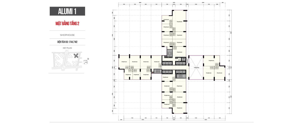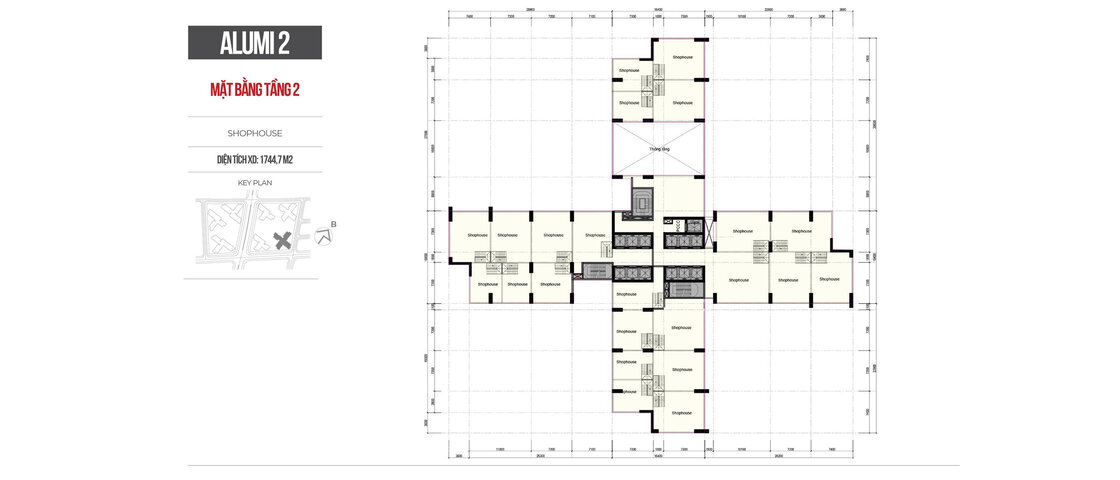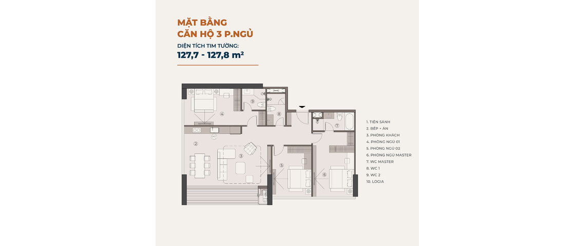 Sản phẩm có Diện tích tim tường là 127,0 m2 và Diện tích thông thủy là 114,0 m2 .