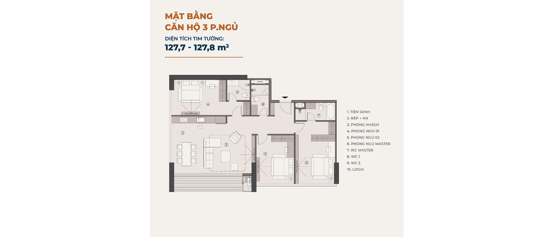 Sản phẩm thuộc loại hình Căn hộ, kết cấu 3BR, với hướng ban công Đông.