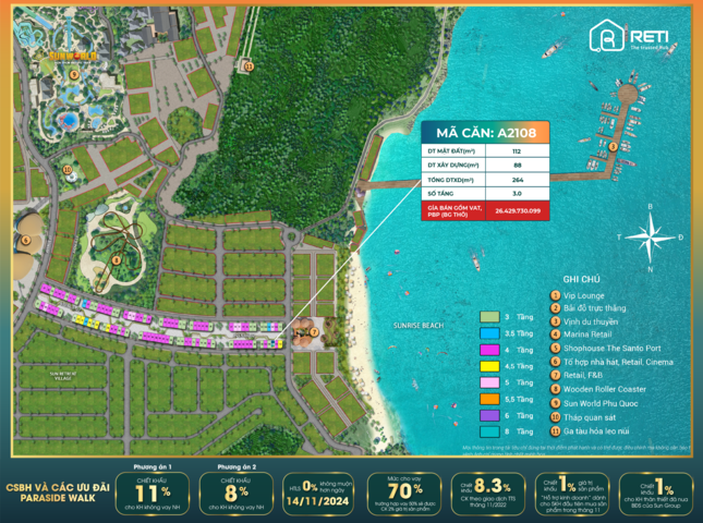 Sản phẩm A2108 nằm trong phân khu PW, đường/dãy A2, dự án Paradise Walk.