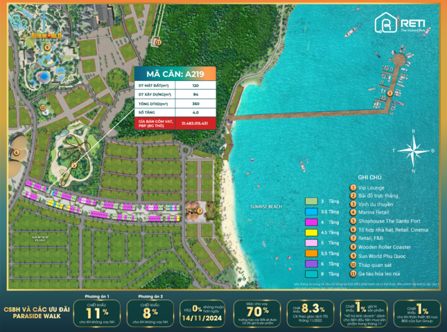 Sản phẩm A219 nằm trong phân khu PW, đường/dãy A2, dự án Paradise Walk.