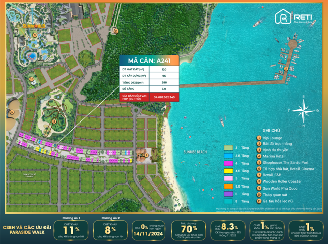 Sản phẩm A241 nằm trong phân khu PW, đường/dãy A2, dự án Paradise Walk.