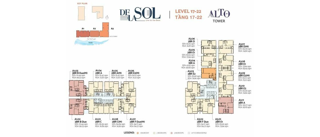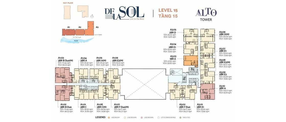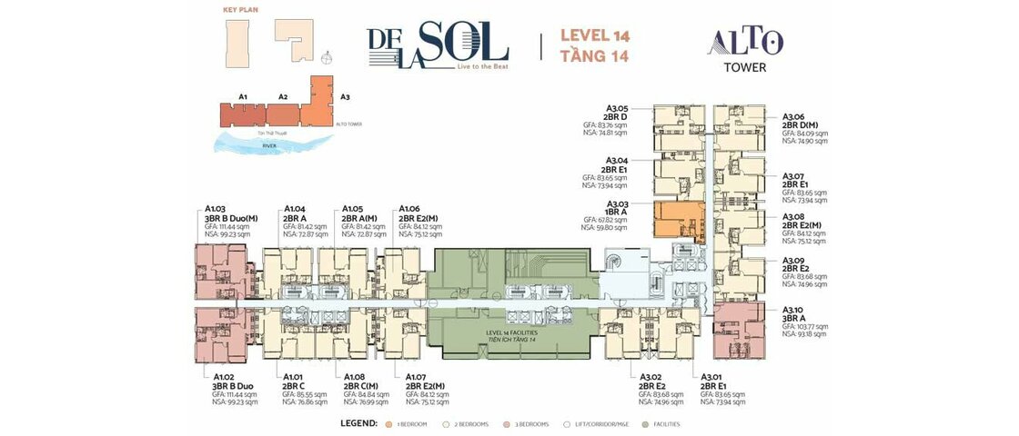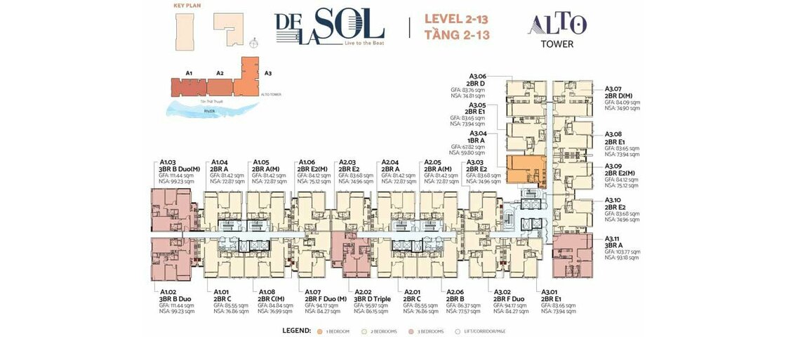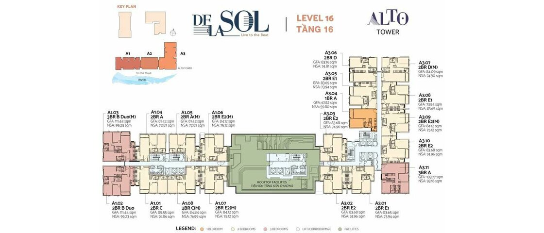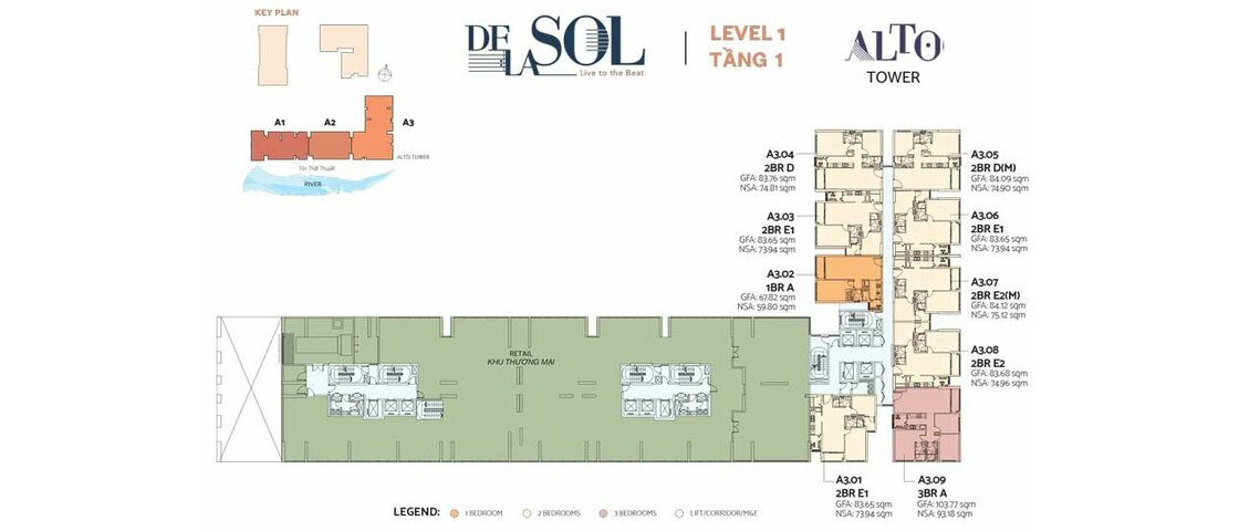 Sản phẩm A3.02.02 nằm trong phân khu A, tòa A3, tầng 2 dự án De La Sol.