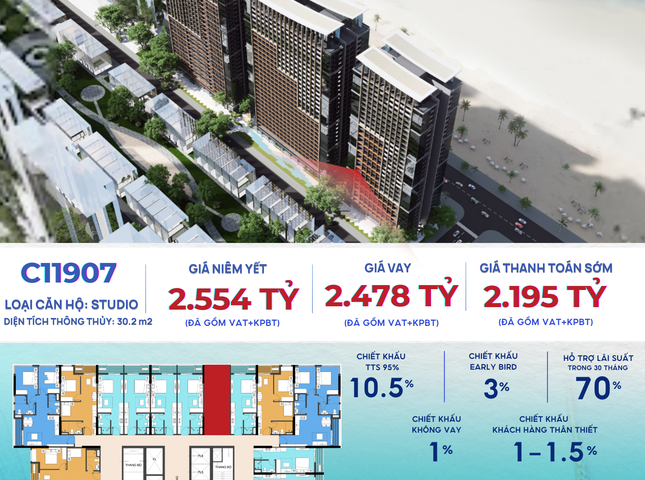 Sản phẩm có Diện tích tim tường là m2 và Diện tích thông thủy là 30,2 m2 .