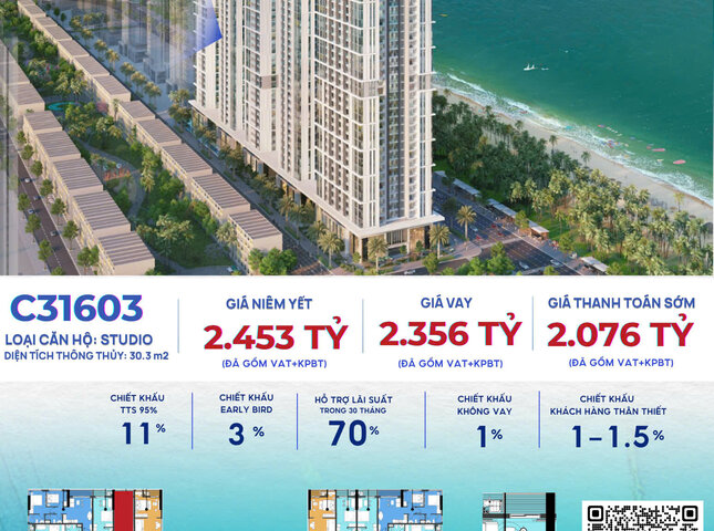 Sản phẩm có Diện tích tim tường là m2 và Diện tích thông thủy là 30,3 m2 .