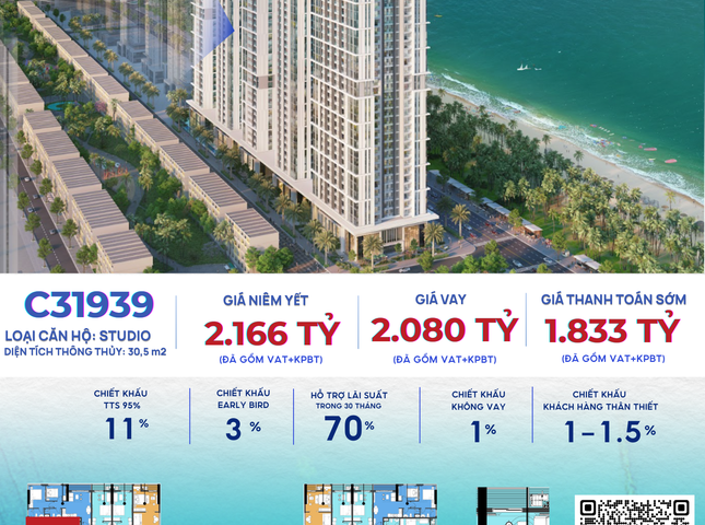 Sản phẩm có Diện tích tim tường là m2 và Diện tích thông thủy là 30,5 m2 .