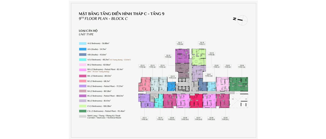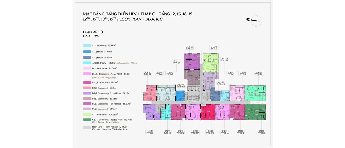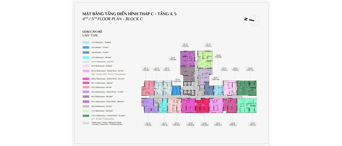Sản phẩm thuộc loại hình Căn hộ, kết cấu A1, với hướng ban công Đông Bắc.