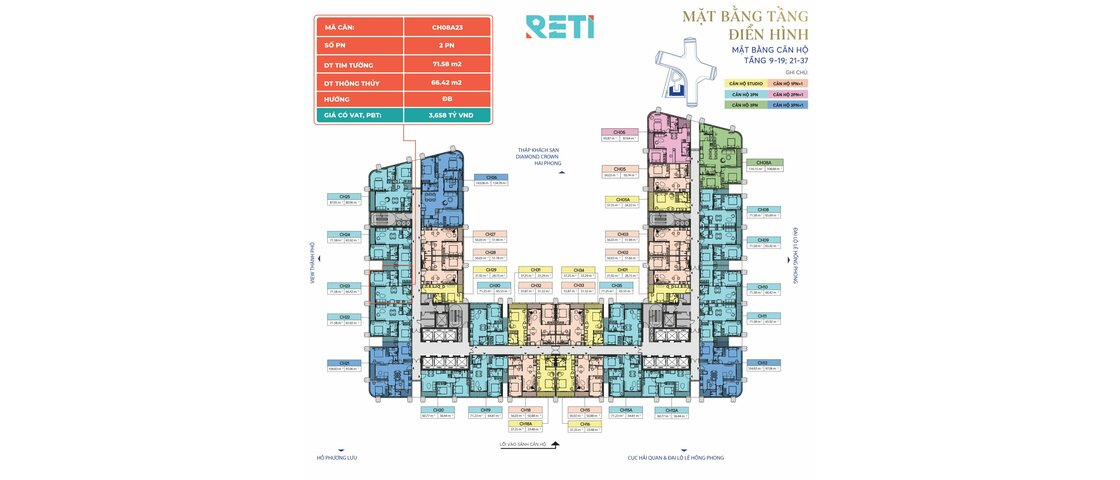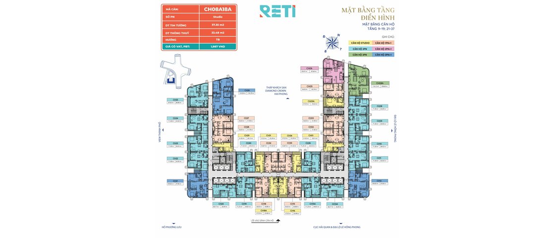 Sản phẩm CH08A33 nằm trong phân khu CH, tòa CH, tầng 08A dự án Diamond Crown Hải Phòng.