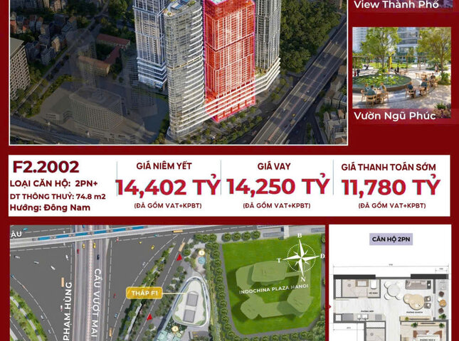 Sản phẩm có Diện tích tim tường là m2 và Diện tích thông thủy là 74,8 m2 .