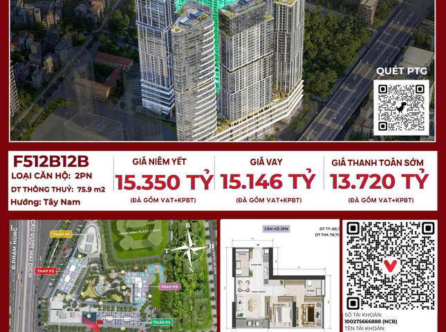 Sản phẩm có Diện tích tim tường là m2 và Diện tích thông thủy là 75,9 m2 .