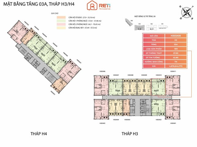 Sản phẩm H303A10 nằm trong phân khu The Hill, tòa H3, tầng 03A dự án The Hill - Sunset Town.