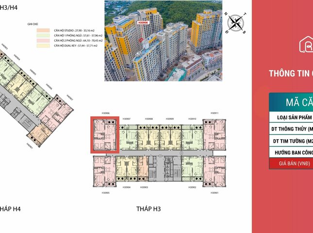 Sản phẩm H30906 nằm trong phân khu The Hill, tòa H3, tầng 9 dự án The Hill - Sunset Town.
