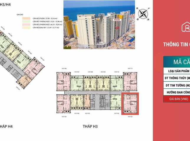 Sản phẩm H31101 nằm trong phân khu The Hill, tòa H3, tầng 11 dự án The Hill - Sunset Town.