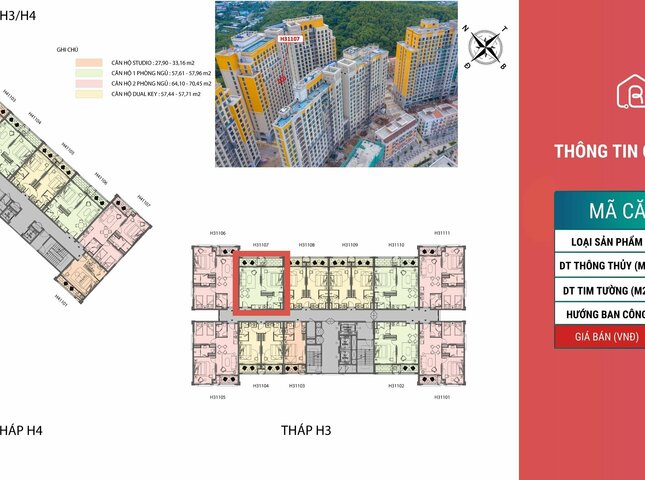 Sản phẩm H31107 nằm trong phân khu The Hill, tòa H3, tầng 11 dự án The Hill - Sunset Town.