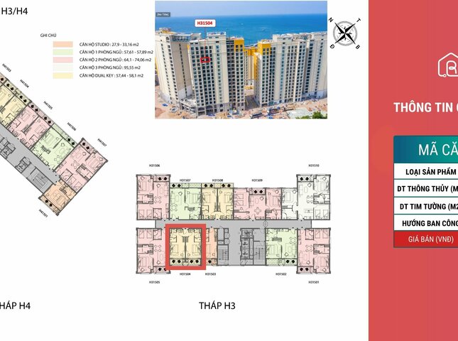 Sản phẩm H31504 nằm trong phân khu The Hill, tòa H3, tầng 15 dự án The Hill - Sunset Town.