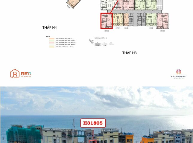 Sản phẩm H31805 nằm trong phân khu The Hill, tòa H3, tầng 18 dự án The Hill - Sunset Town.