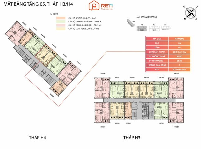 Sản phẩm H40505 nằm trong phân khu The Hill, tòa H4, tầng 5 dự án The Hill - Sunset Town.