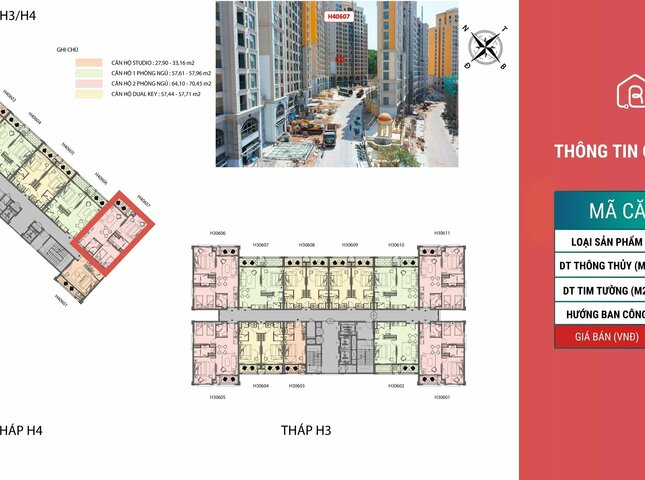 Sản phẩm H40607 nằm trong phân khu The Hill, tòa H4, tầng 6 dự án The Hill - Sunset Town.