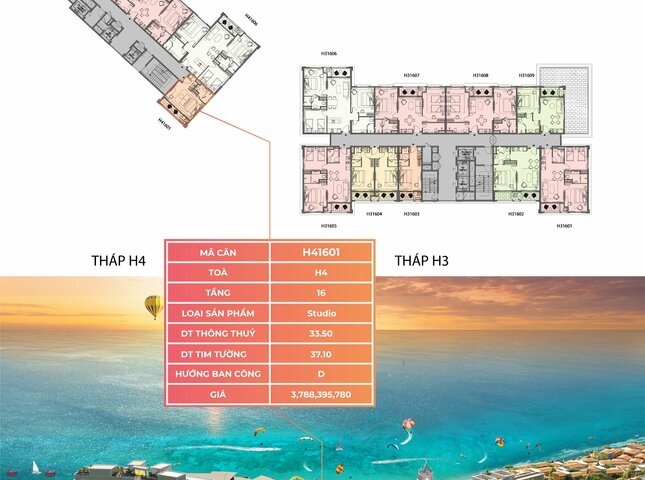 Sản phẩm H41601 nằm trong phân khu The Hill, tòa H4, tầng 16 dự án The Hill - Sunset Town.