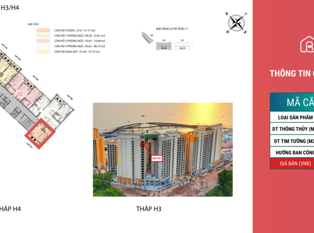 Sản phẩm H41701 nằm trong phân khu The Hill, tòa H4, tầng 17 dự án The Hill - Sunset Town.