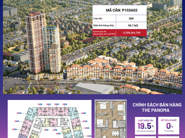 Sản phẩm P103A02 nằm trong phân khu The Panoma, tòa P1, tầng 03A dự án Sun Cosmo Residence Đà Nẵng.