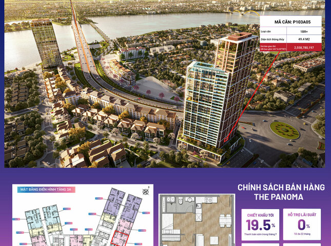 Sản phẩm P103A05 nằm trong phân khu The Panoma, tòa P1, tầng 03A dự án Sun Cosmo Residence Đà Nẵng.