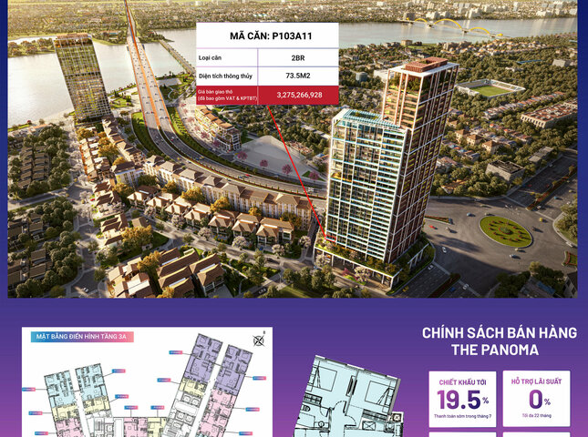 Sản phẩm P103A11 nằm trong phân khu The Panoma, tòa P1, tầng 03A dự án Sun Cosmo Residence Đà Nẵng.