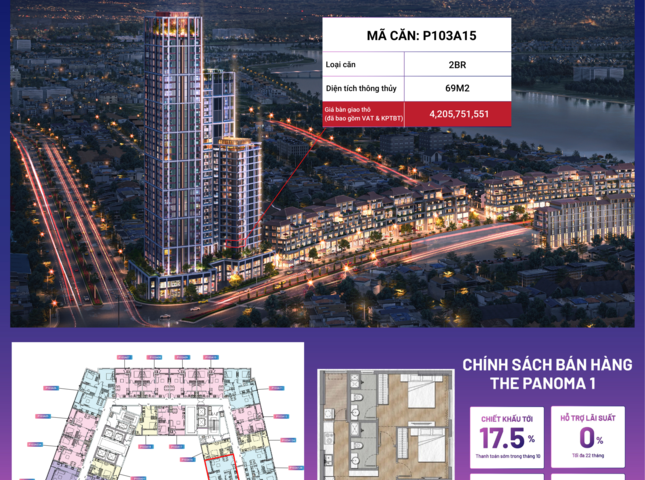 Sản phẩm P103A15 nằm trong phân khu The Panoma, tòa P1, tầng 03A dự án Sun Cosmo Residence Đà Nẵng.