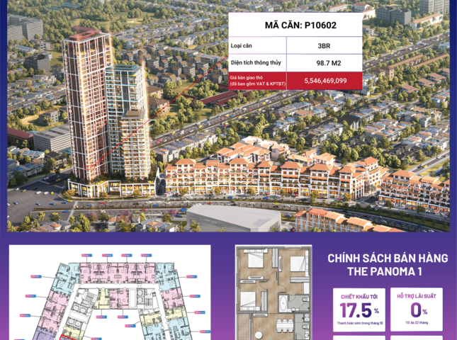Sản phẩm P10602 nằm trong phân khu The Panoma, tòa P1, tầng 06 dự án Sun Cosmo Residence Đà Nẵng.