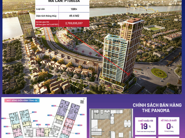 Sản phẩm P10603A nằm trong phân khu The Panoma, tòa P1, tầng 06 dự án Sun Cosmo Residence Đà Nẵng.