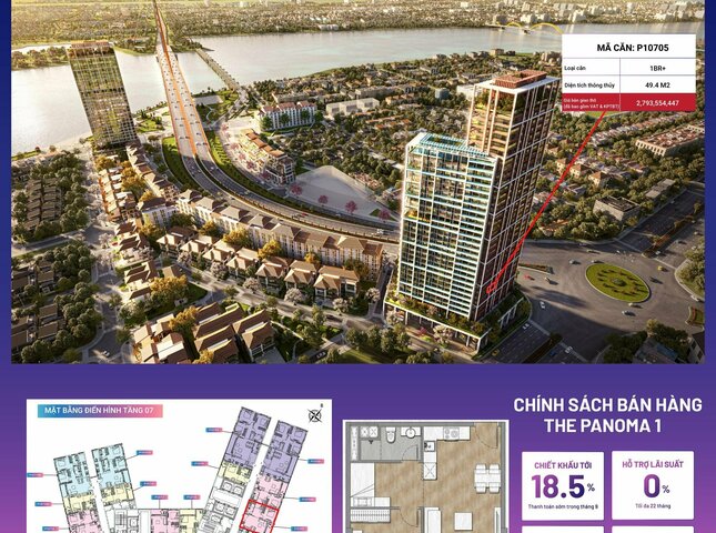 Sản phẩm P10705 nằm trong phân khu The Panoma, tòa P1, tầng 07 dự án Sun Cosmo Residence Đà Nẵng.
