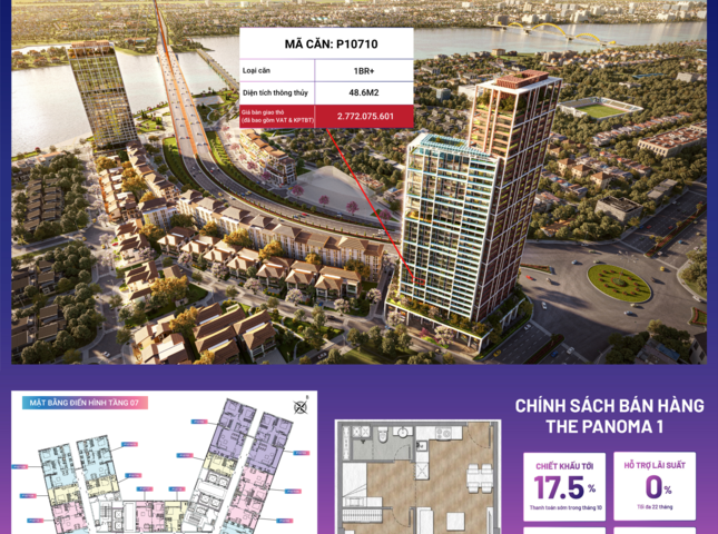 Sản phẩm P10710 nằm trong phân khu The Panoma, tòa P1, tầng 07 dự án Sun Cosmo Residence Đà Nẵng.