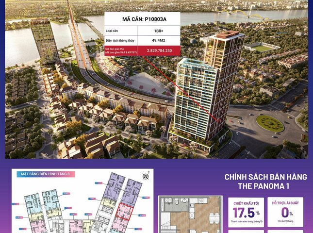 Sản phẩm P10803A nằm trong phân khu The Panoma, tòa P1, tầng 08 dự án Sun Cosmo Residence Đà Nẵng.