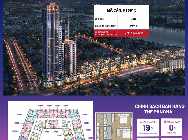 Sản phẩm P10815 nằm trong phân khu The Panoma, tòa P1, tầng 08 dự án Sun Cosmo Residence Đà Nẵng.