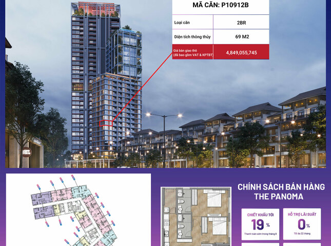 Sản phẩm P10912B nằm trong phân khu The Panoma, tòa P1, tầng 09 dự án Sun Cosmo Residence Đà Nẵng.