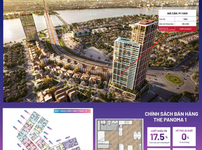Sản phẩm P11009 nằm trong phân khu The Panoma, tòa P1, tầng 10 dự án Sun Cosmo Residence Đà Nẵng.