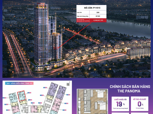 Sản phẩm P11015 nằm trong phân khu The Panoma, tòa P1, tầng 10 dự án Sun Cosmo Residence Đà Nẵng.