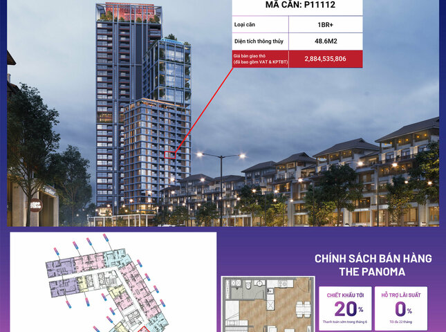 Sản phẩm P11112 nằm trong phân khu The Panoma, tòa P1, tầng 11 dự án Sun Cosmo Residence Đà Nẵng.