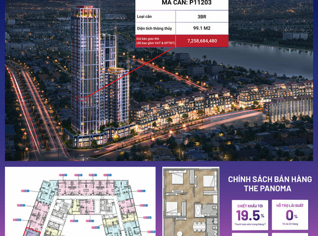 Sản phẩm P11203 nằm trong phân khu The Panoma, tòa P1, tầng 12 dự án Sun Cosmo Residence Đà Nẵng.