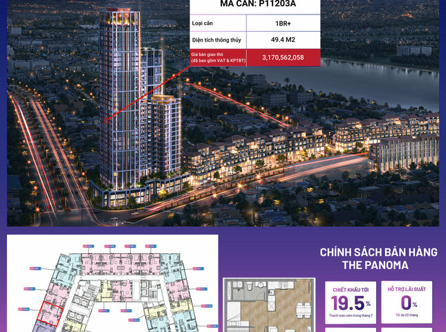 Sản phẩm P11203A nằm trong phân khu The Panoma, tòa P1, tầng 12 dự án Sun Cosmo Residence Đà Nẵng.