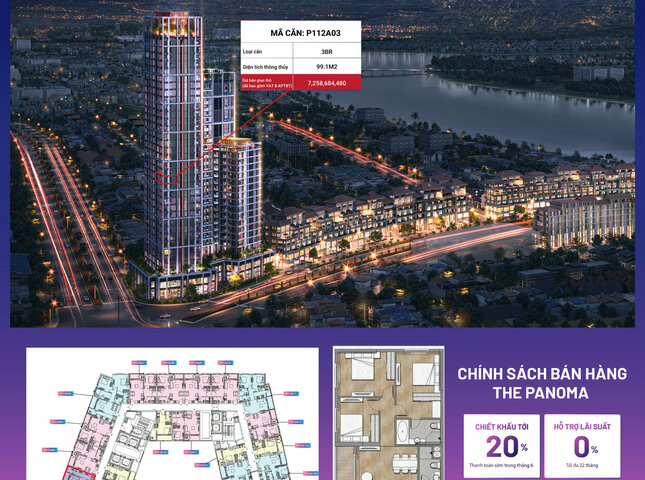 Sản phẩm P112A03 nằm trong phân khu The Panoma, tòa P1, tầng 12A dự án Sun Cosmo Residence Đà Nẵng.