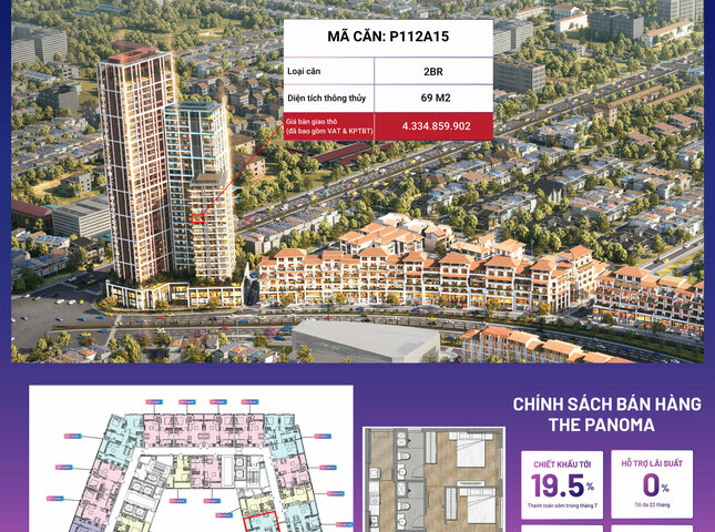 Sản phẩm P112A15 nằm trong phân khu The Panoma, tòa P1, tầng 12A dự án Sun Cosmo Residence Đà Nẵng.