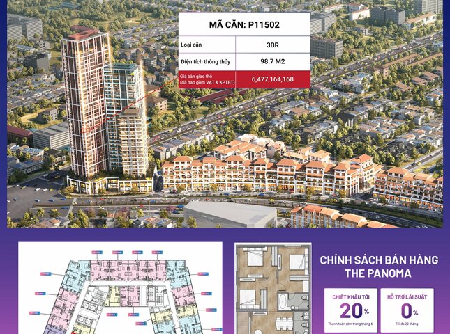 Sản phẩm P11502 nằm trong phân khu The Panoma, tòa P1, tầng 15 dự án Sun Cosmo Residence Đà Nẵng.