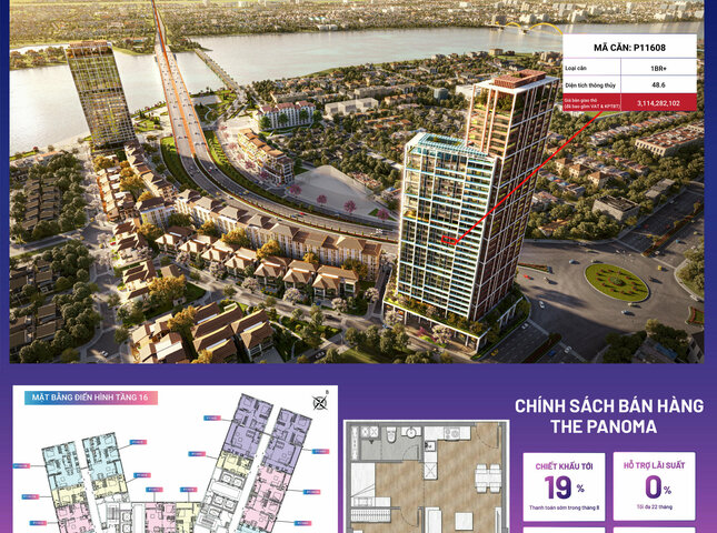 Sản phẩm P11608 nằm trong phân khu The Panoma, tòa P1, tầng 16 dự án Sun Cosmo Residence Đà Nẵng.