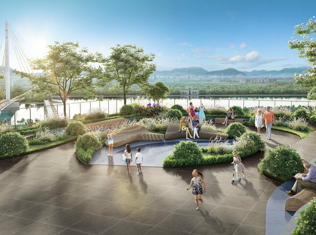 Công ty thiết kế Aedas là một trong những cái tên nổi tiếng nhất thế giới, đến từ nước Anh, thành lập năm 2002 và đã tham gia thiết kế hàng loạt dự án biểu tượng ở các quốc gia và vùng lãnh thổ khác nhau. Các tác phẩm kiến trúc của Aedas thường chú trọng khai thác các yếu tố cảnh quan tự nhiên như sông hồ, thác nước, công viên… để nhằm kiến tạo nên chỉnh thể hoàn hảo giữa thiên nhiên và công trình xây dựng, tạo sự kết nối giữa công trình nội và ngoại khu, đông thời khéo léo lồng ghép những hình tượng, ý nghĩa độc đáo mang tính biểu tượng. Aedas tự hào là công ty duy nhất thực hành thiết kế địa phương và toàn cầu dựa trên nguyên tắc chia sẻ nghiên cứu, kiến thức địa phương và thực hành quốc tế trên phạm vi toàn cầu.