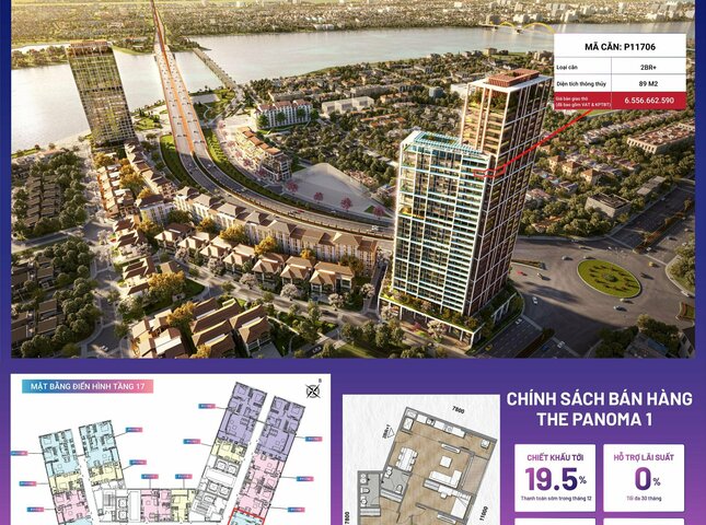 Sản phẩm P11706 nằm trong phân khu The Panoma, tòa P1, tầng 17 dự án Sun Cosmo Residence Đà Nẵng.