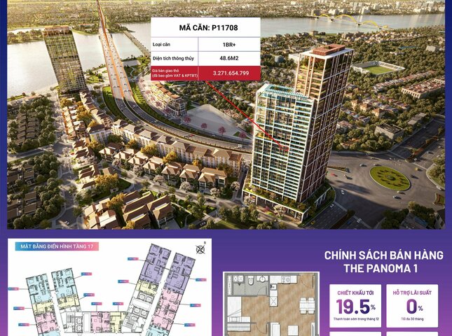 Sản phẩm P11708 nằm trong phân khu The Panoma, tòa P1, tầng 17 dự án Sun Cosmo Residence Đà Nẵng.