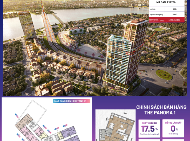 Sản phẩm P12206 nằm trong phân khu The Panoma, tòa P1, tầng 22 dự án Sun Cosmo Residence Đà Nẵng.