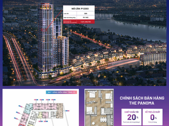 Sản phẩm P12303 nằm trong phân khu The Panoma, tòa P1, tầng 23 dự án Sun Cosmo Residence Đà Nẵng.