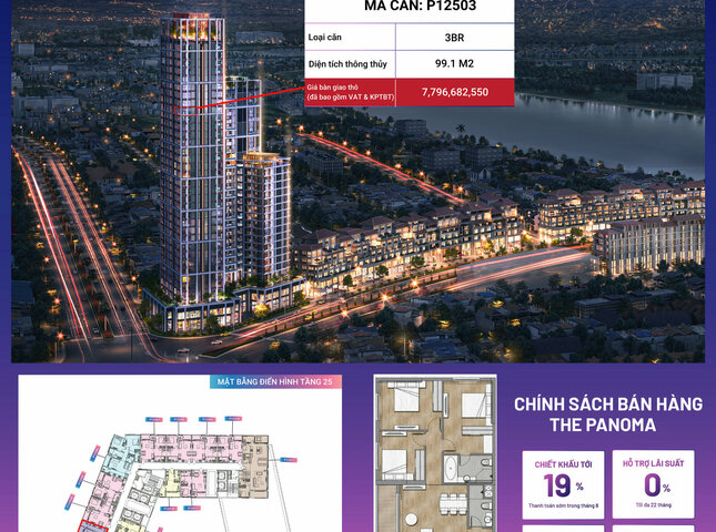 Sản phẩm P12503 nằm trong phân khu The Panoma, tòa P1, tầng 25 dự án Sun Cosmo Residence Đà Nẵng.